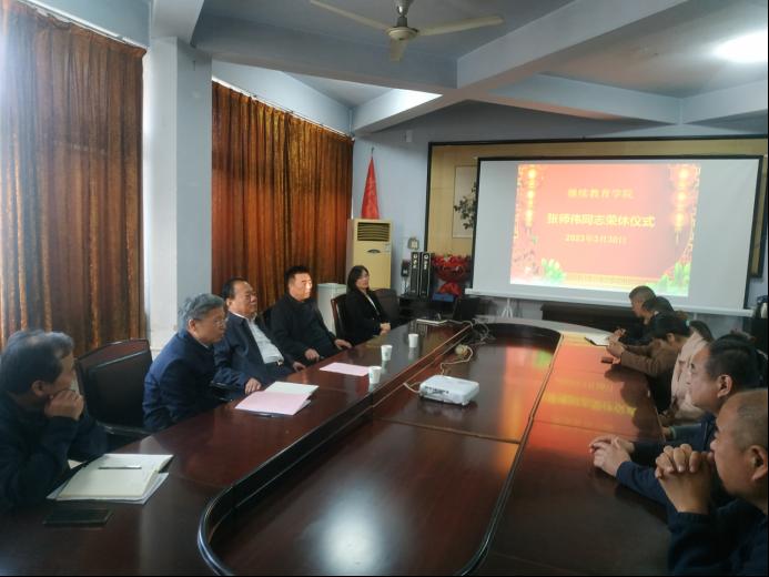 3月30日下午,伟德国际victor1946在学院会议室举行正处级组织员张师伟同志荣休仪式。学校党委委员、副院长黄济民同志、伟德国际victor1946领导班子成员及全体工作人员参加,仪式由伟德国际victor1946党支部书记、院长邵留成主持。