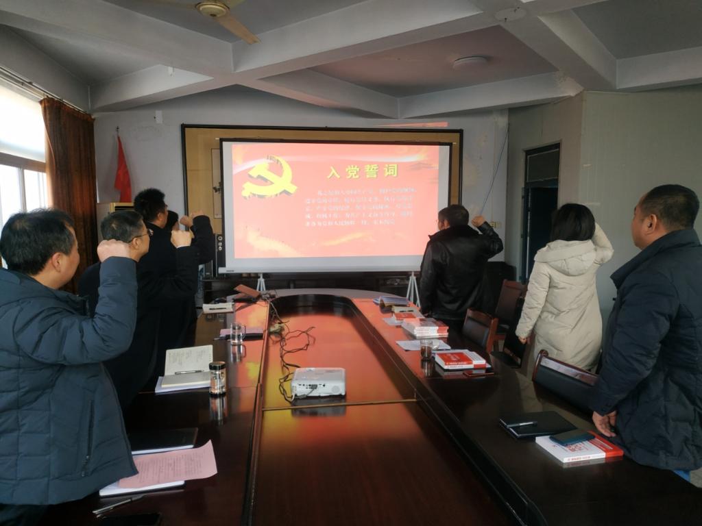 最后,全体党员起立,面对党徽,共同重温入党誓词。